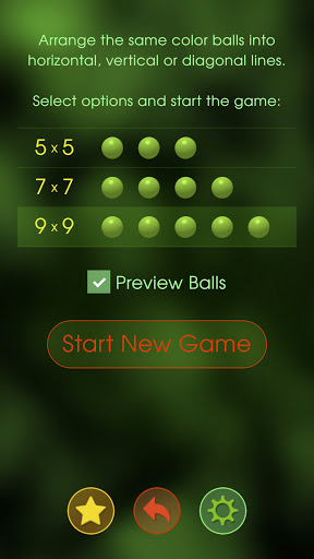 Immerse yourself in a rainbow-colored world where your goal is to combine similar balls and form lines. You can arrange these balls horizontally, vertically, and diagonally. There are three various options for game board sizes: 5x5, 7x7, and 9x9. The rules are simple - you need to get a certain number of matching balls in a row to complete a level: three, four or five balls depending on the board size.
