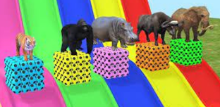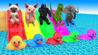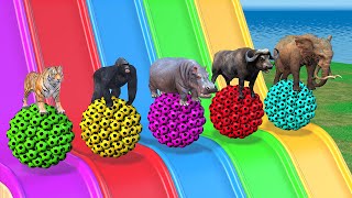 Long Slide Game With Elephant Gorilla Buffalo Hippopotamus Tiger Jaguar - 3d Animal GameAnimals 3D