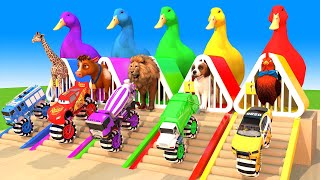 Long Slide Game With Duck, Cow, Chicken, Dog, Giraffe, Lion - 3d Animal GameHero Cars