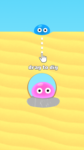 Dig in the sand with your finger and take the blobs to their love.