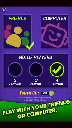 Ludo is a strategy board game for 2,3 and 4 players, in which the players race their four tokens from start to finish according to the rolls of a dice.