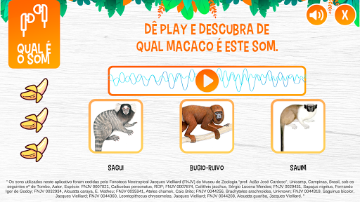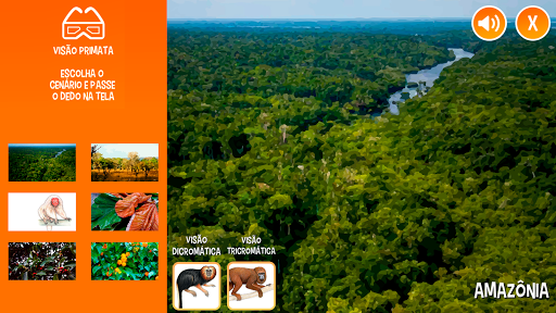 Neste aplicativo você aprenderá um pouco mais sobre a diversidade dos macacos brasileiros através de curiosidades, seus sons e como enxergam.