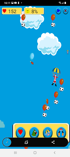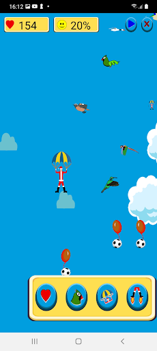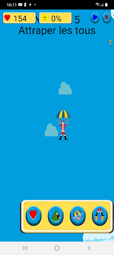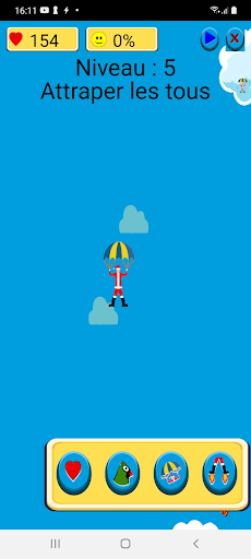 Il s'agit de diriger un parachutiste qui doit aider les enfants qui ont accroché leurs jouets à des ballons...