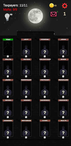The team in which the number of active players gets 0 - loses the game. Each night and daytime phase, one player gets neutralized. Whether you will survive and get to the end of the game or you will be among the first victims depends on your ability to get oriented quickly and precisely.
