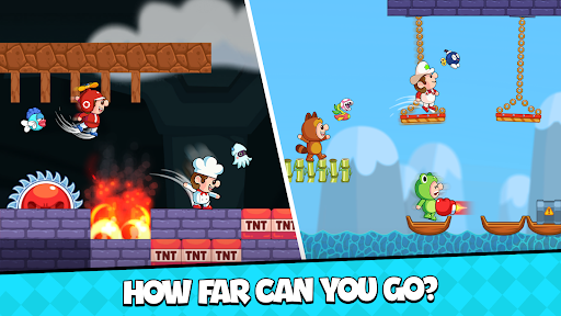 - Use buttons to run, jump, and overcome all obstacles.
