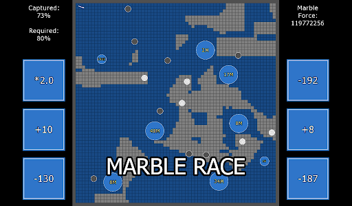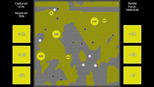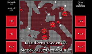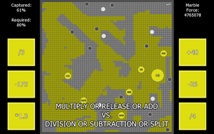 The player can influence the outcome of the game by using buttons containing mathematical operations. The goal is to capture as much of the battlefield as possible with the help of rolling marbles. The operation is not so easy as there are also enemy balls. They try to divert your marbles or erase your color from the already captured territories.