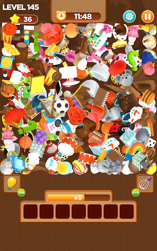 You just blow your mind to find and match identical 3D objects to make them pop among a tangled mess. When all 3D objects on the ground are collected before the time is over, you can pass the current level! 🏆 Match Triple 3D can help you to strengthen your memory and boost your engagement. Let’s try and become a master!