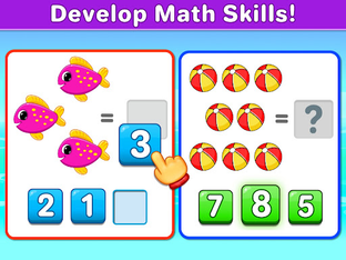 Math Kids is a free learning game designed to teach young children numbers and mathematics. It features several mini-games that toddlers and pre-K kids will love to play, and the more they do the better their math skills will become! Math Kids will help preschoolers, kindergarteners, 1st graders to learn to identify numbers and start training with addition and subtraction puzzles. They'll have a great time completing games and earning stickers, and you‘ll have a great time watching them grow and learn.
