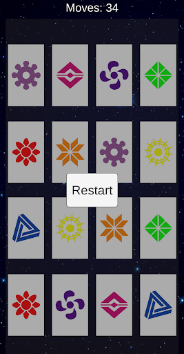 You can restart once you've won, and it tracks the amount of moves. Just a simple time waster, I'll be adding more features as time goes on. My wife requested the screaming goat, but I will be adding some more sound effects in the next release along with some more difficult matching setups.