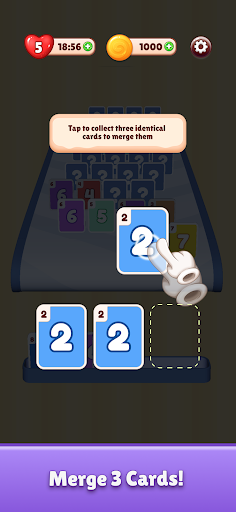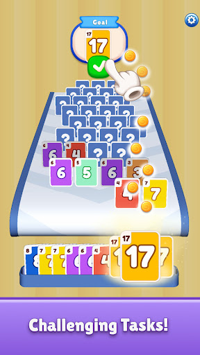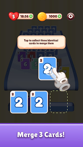 Tap and merge 3 identical numerical cards that will be showed on the bottom slot bar & complete all tasks. Solve the puzzles, win each level and unlock new stylish and exiting categories !