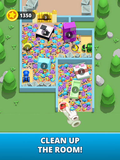 Can you deploy the vacuum cleaners and clean completely the rooms for decoration?. Solve the puzzles, win each level and unlock new stylish and exiting rooms !