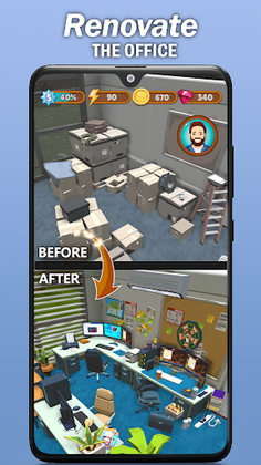 When playing this puzzle game, you will match and merge items to renovate the office, tidy it up, throw out the trash, put new furniture, organise comfortable and convenient environment for your employees…