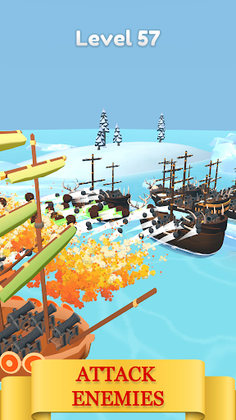 Join the ultimate pirate war by merging ships, mastering cannon mechanics, and conquering the seas. Defeat rivals in challenging levels with stunning 3D graphics.
