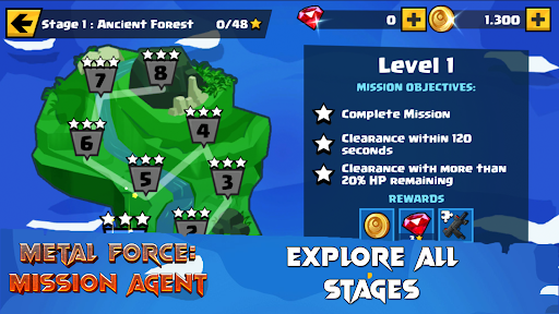With a cracking funny story, awesome upgradeable fighting skills and an epic arsenal of weapons that will make even the most heroic of heroes envious, Metal Force : Mission Agent arcade fight fest has enough enemies and boss fights to satisfy every hardcore gamer.