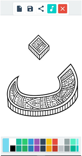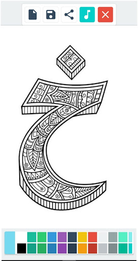 Mandala Huruf Hijaiyah - Cat menawarkan desain-desain mandala yang kompleks dan simetris, di mana setiap lingkaran dan elemen mandala mengandung huruf Hijaiyah yang terorganisir secara harmonis. Mandala tersebut memberikan kesempatan untuk memadukan warna dan menciptakan komposisi yang menarik pada setiap huruf dan bagian dari mandala.