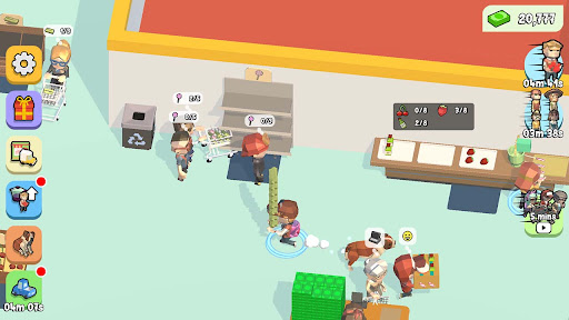 The goal of the game is to move as fast as possible to collect food and stack the shelves, hiring cashier, farmer, chef… to sell as many products as possible, attracting more and more customers.
