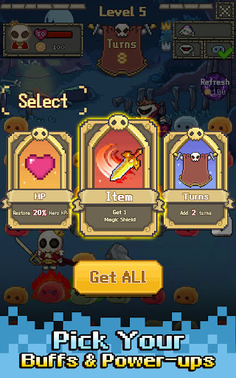 Choose one of three random buffs to enhance your character. Tailor your strength based on the current battle situation, your personal preference, and your tactical "build" to create a unique combat style.
