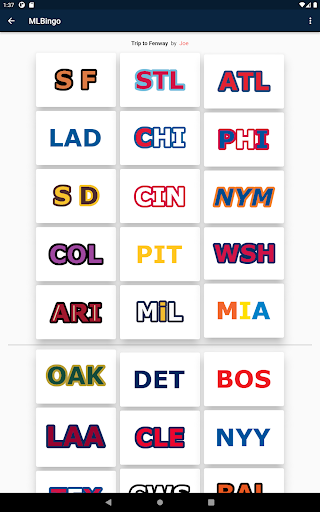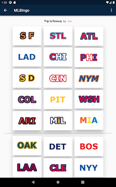 All thirty pro baseball teams are presented to you, similar to a bingo card, and every time you see someone out in the wild wearing that teams merchandise, you click on that team and claim a point.