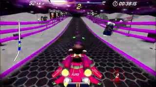 The title is an arcade racing game featuring crazy monkey characters struggling for victory riding ludicrous vehicles.