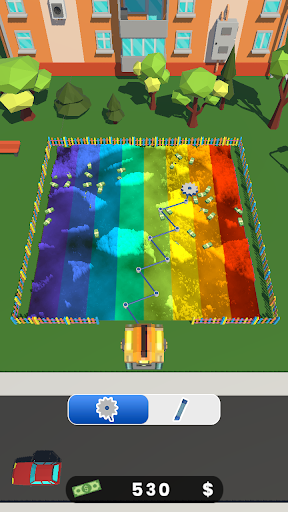 Money will appear from where you cut the grass, so switch to the hose and suck it.