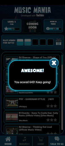 Tap to the beat, and let the rhythm guide your fingers. This is a music game that's easy to play, and anyone can enjoy it. We have some of the most recent trending music, and continue to add to our list to play with. This music game is developed with YouTube, so you can have the best experience in listening to music and playing to it.