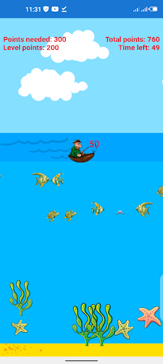 The Game is a simple fishing simulator with realistic graphics. Many fishes fantastically swim underwater and you have to catch the fishes by using the fish hook.