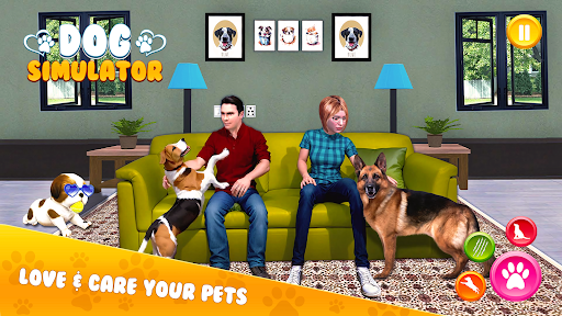 From a virtual pet dog collection - Labrador Retriever, Beagle, Pug, Griffon, or bulldog among these breeds Select your favorite dog for the puppy simulator. Bring more excitement to your life with the Dog Simulator of puppies world. You as a naughty doggy have all the pet care skills to engage others, make more puppy pet friends and play dog simulation for a real time competition. There are a lot of fun dogy life simulation activities waiting for you, so choose your pet dog character from pet shop, ready in pet salon make a mess in different interactions and satisfy yourself on beautiful virtual dog puppy simulator game scenes. Like a real dog of puppy sim, bark loudly, jump over the hurdles, knock off and destroy objects. My virtual dog puppy simulator is a nice dog family game and best doge life simulator for every player.