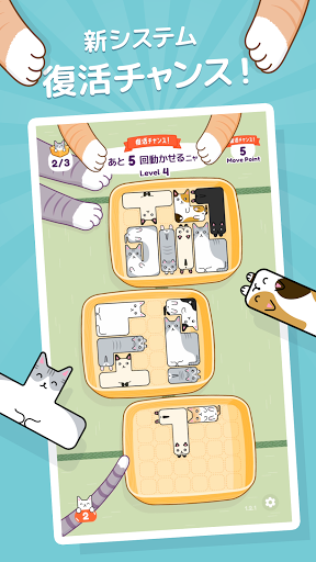 Challenging puzzle game featuring cuddly cats with increasingly complex sleeping positions. Use boxes strategically to progress and revive. Limited tail power-ups add extra strategy.