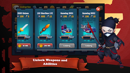 Unlock powerful weapons and abilities to enhance your ninja skills.