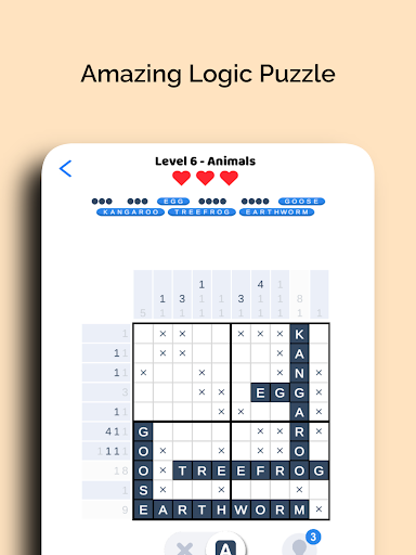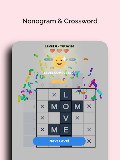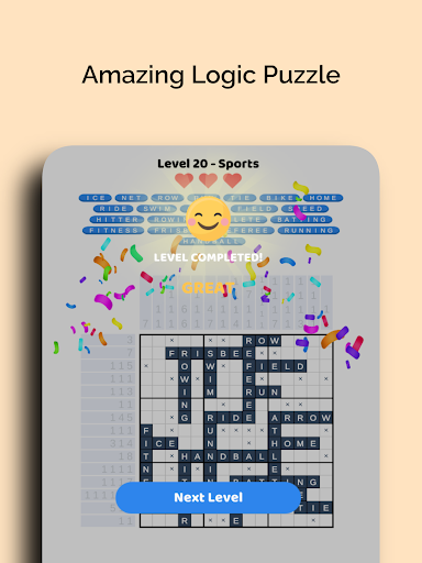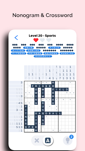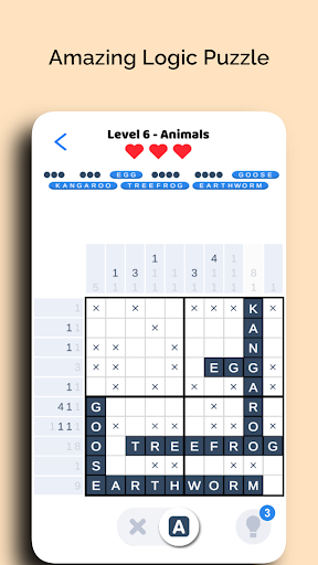 Enjoy a cross number puzzle challenge that combines classic nonograms with crosswords. Fill the grid to reveal & find hidden words and solve crossword puzzles. With enhanced nonogram gameplay, it's easy to exercise your brain by resolving logic pic puzzles and enrich your vocabulary at the same time. It is the best number finding game available to enjoy and to have fun with words..