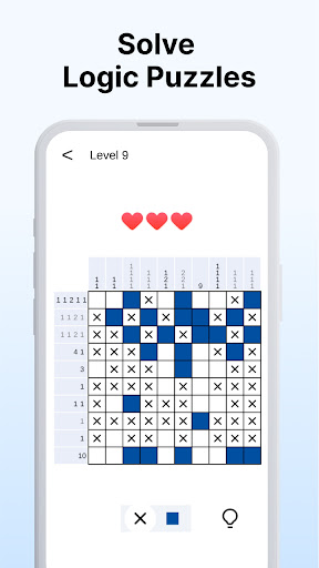 - Solve logic nonogram puzzles to reveal mysterious pictures