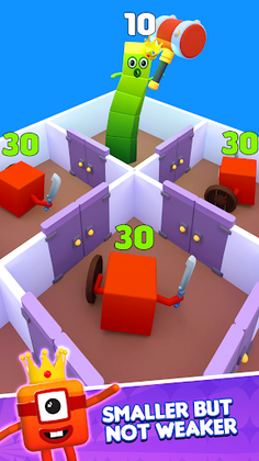 This maze game is where outer look doesn't mean anything, you can be smaller BUT stronger than your enemies. How? Whenever entering the right room, beating a smaller number cube, its score would be plus in yours. Try to survive so that you can rescue the fairy locked in a cage and get a gift box. Remember to find the closest way to save time on the run of getting the victory.
