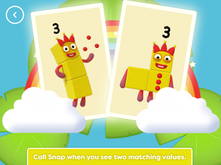 ● Snap - Find a snap when you see two cards with matching values, this could be Numberblock One and one Apple or numeral six and six Numberblobs.