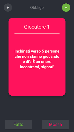 Con una vasta selezione di domande intriganti e audaci sfide, obbligo o verita ti terrà intrattenuto per ore. Sei pronto a rispondere a domande difficili sulla tua vita, l'amore e l'amicizia? Oppure preferisci affrontare coraggiosi osi e mettere alla prova i tuoi limiti? La scelta è tua!