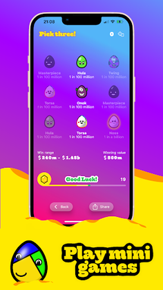 Compete for prizes and prestige by collecting over 200 eggs, playing mini games, and joining a team in this clicker/tapper with no ads.