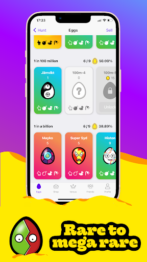 Join our community of over 60 million daily clickers and take on the challenge of winning our monthly Compete league. With absolutely no advertisements, our optional multiplayer game offers players the chance to compete for worldwide recognition and prizes. Watch the gameplay unfold and unlock new eggs to collect, with more than 200 super cute options available and still more being added. Play our mini games to find each egg in four different ways, which will give you the chance to find some of the 750+ first finds. If you prefer scavenger hunt-style clues, chat with the community and work together to unlock special eggs. Choose between teams Meteor, Blaze, or Aurora and compete alongside new friends and longtime fans alike. Our active community listens to your feedback and offers Discord integrations for Compete, Teams, Scavenger Hunt eggs, and more. Enjoy our game on or offline with frequent updates and endless gameplay possibilities. Collect eggs of varying rarity, some with odds of just 1/250, or take on the insane odds of finding one in a trillion egg. Become a true collect legend by playing various mini games like Tap Blast, Scrambled Eggs, and Dirty Egg to find all 750+ ways to collect. Competitive players around the world opt in to our daily and monthly leagues, based on effort and grinding but also a bit of luck. With no pay-to-win options, every player is on equal footing. Pick your team and join Discord to take on the competition. Although not an idle game, fans of clickers and incremental games alike will find that this game has something for them. Are you ready to take on the challenge and beat the odds? Get ready, get set, eggy, go!