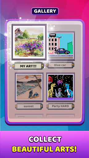 You can be the author of the most diverse art paintings, from cats to unicorns, from Manet to Picasso, and from the beach to the moon. Here you can give wings to your imagination while enjoying a cozy coloring game DIY and gather everything together in your Gallery!