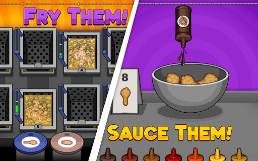You've won a trip to Starlight City and find yourself in charge of Papa's latest restaurant, where you'll need to run the fryers and toss chicken wings in an assortment of flavorful sauces. Your customers expect a great presentation, so arrange the fried foods with sides and veggies so they're pleasing to the eye -- and their stomachs!