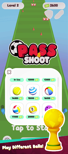 The aim of Pass n’ Shoot is pass obstacles, shoot, and score a goal, get the