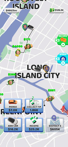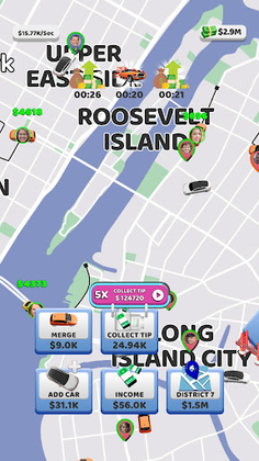 Drive passengers in cab, upgrade and merge cars to expand business, unlock new city. Ready to heat things up?
