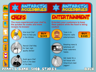 As Penny journeys back to Antarctica, she finds herself disappointed with the food options available, so she takes it upon herself to create the best animal restaurant possible. Utilize your managerial skills to help Penny attract a hungry crowd and keep them satisfied, all while making sure they are served promptly and efficiently. Take advantage of the multitude of upgrade options to raise your animal restaurant to the next level, ultimately making a name for yourself as the diner legend!