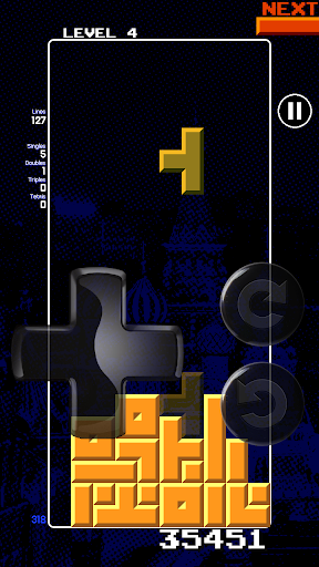 This game is a tribute to the unlicensed 8bit port title. It offers a variety of options for a personalized gaming experience. You can opt to include pentominoes or stick with the classic tetrominoes, or better yet, integrate both shapes for an exciting gameplay. Moreover, play against a friend with the Bluetooth multiplayer technology. Choose either to compete with each other in the battle mode or collaborate in the co-op mode. You can also test your skills in puzzle mode, where it has more than 70 challenges. Keep an eye for the added risks such as random blocks, advancing lines, and sneaky piece sequences that can intensify the game. Make your game experience more exceptional by customizing the controls or adding/removing features as you please. Take up the challenge to design your own levels through the level editor, and play them too. The game boasts of no loading times, fast-paced action, classic sound effects, and soundtracks that bring back nostalgia. The retro look and feel complete the package. The game is produced with Clickteam Fusion 2.5, but is not related to the original game's creators.