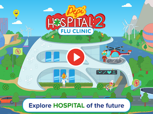 Same as in the first edition of Pepi Hospital, this flu clinic of the future encourages you to create your own stories and is also filled with a wide range of new activities: become a doctor and treat patients with the latest interactive devices and prevent infections with anti-virus vaccines; play the role of a scientist and experiment with bacteria using various science lab equipment; or take on the role of a patient and receive care from adorable Pepi robots.