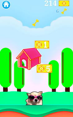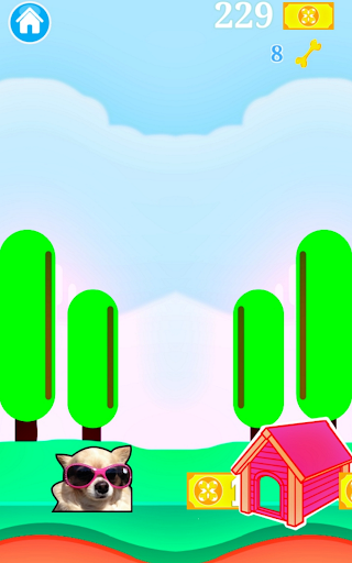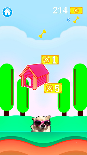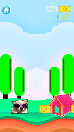 Run Mode: Tap to jump, avoid dog houses, and collect coins & bones!