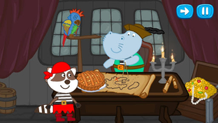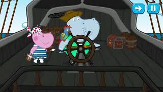 These are new stories about pirates and adventures, where you could find exciting games, games for kids. We will cook dishes for pirates, travel through seas and oceans, find treasures, fight and look for exciting sea adventures! Today, princess Hippo and cook take part in the competition to be the host of all seas and oceans. A crafty cook can cook special food. He used ancient magical recipes, and the old captain felt asleep and all his pirates turned into zombies. And now pirate princess Hippo should fight with evil forces and win the bad magic. Let's start! Sails up and let's go to the open sea.