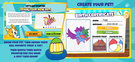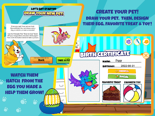 Just DRAW your Pets and their supplies, SNAP a picture in the Pets App then PLAY and CARE for your own amazing world of Virtual Pets!