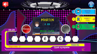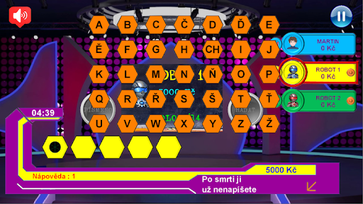Hra pro 1-3 hráče podle známé TV soutěže, kdy hráči postupně hádají slova poskládané ze 4-10 písmen.