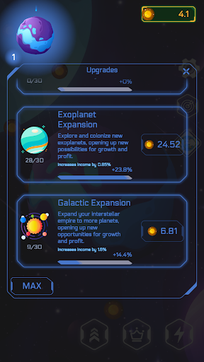 * Conquer Planets: Click to claim new planets and expand your cosmic domain.