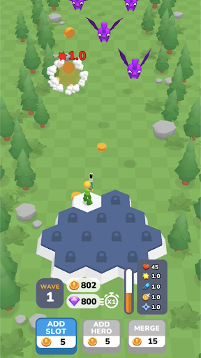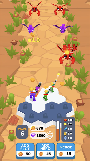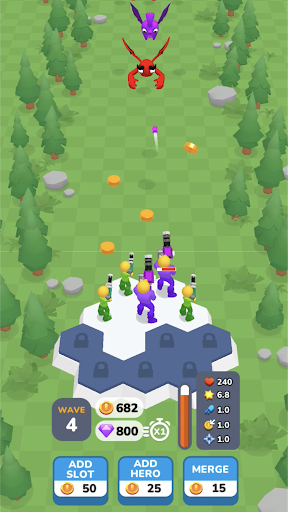 Merge heroes, upgrade their weapons and build your base strong enough to resist all monsters.