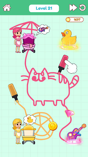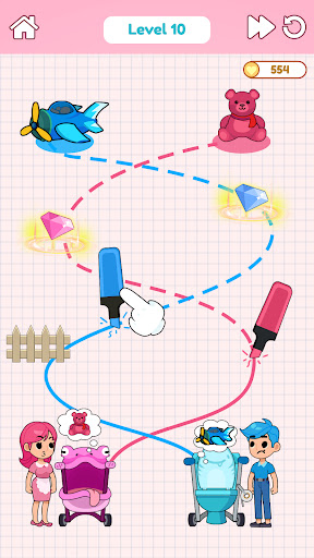 Your mission is to draw lines for characters to retrieve exciting objects. Draw lines to connect characters to their favorite objects. However, can you overcome dangers and thwart villains to emerge victorious in this draw puzzle game?
